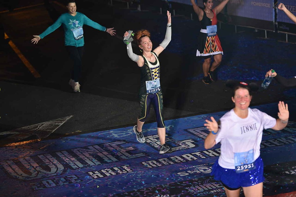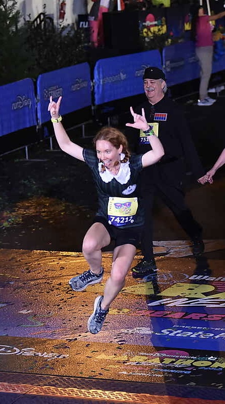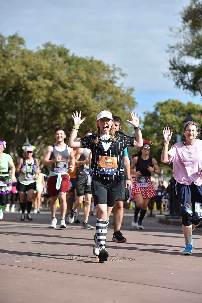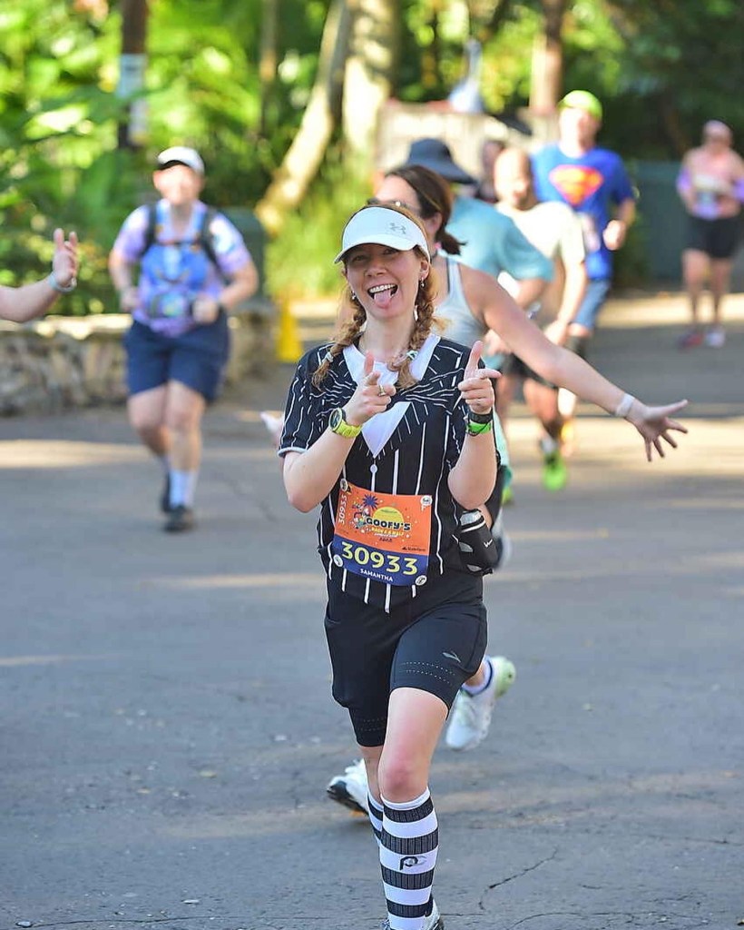 Depending where you are in the pack, you may experience congestion. This also depends on the race – runDisney races aren’t usually competitive for most, making them heavier in the back. You won’t know when you’ll be starting until packet pickup prior to the race, so be prepared with a few different poses. If you have a pocket where you can stretch out without smacking, punching, or tripping other runners, enjoy the moment and throw up those hands (or attempt that jump). If you’re running with someone or there are groups around you, it may be best to do something less grand with your hands and flash the cameras (read the rest of this sentence, please) your most dazzling grin. No matter what, smile, celebrate, and enjoy your achievement.